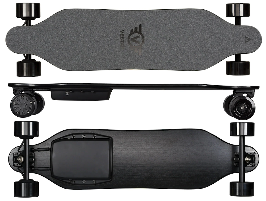 Os dois motores embutidos possuem 600 watts de pico cada um e podem oferecer ao eboard, velocidade máxima em torno de até 43 km/h, além de possibilitar alcançar inclinações de 20%.