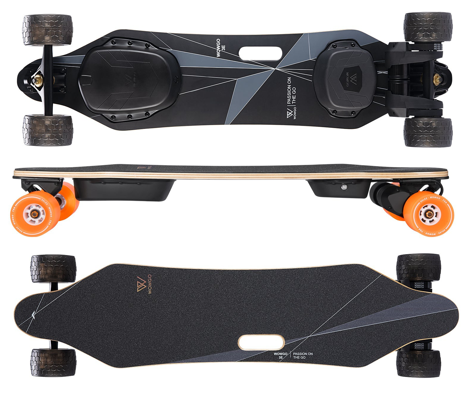 Os dois motores utilizados no 3E são os famosos 5055 com capacidade liberada de 650 watts cada um. Esta tração é capaz de atingir 48 km/h, além de alcançar 25% de inclinação em subidas.